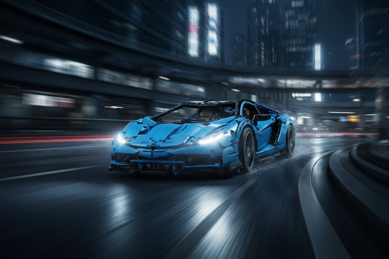 Blue Bull – 1:8 Supersportwagen mit vertikalen Türen & Carbon‑Look (3842 Teile)